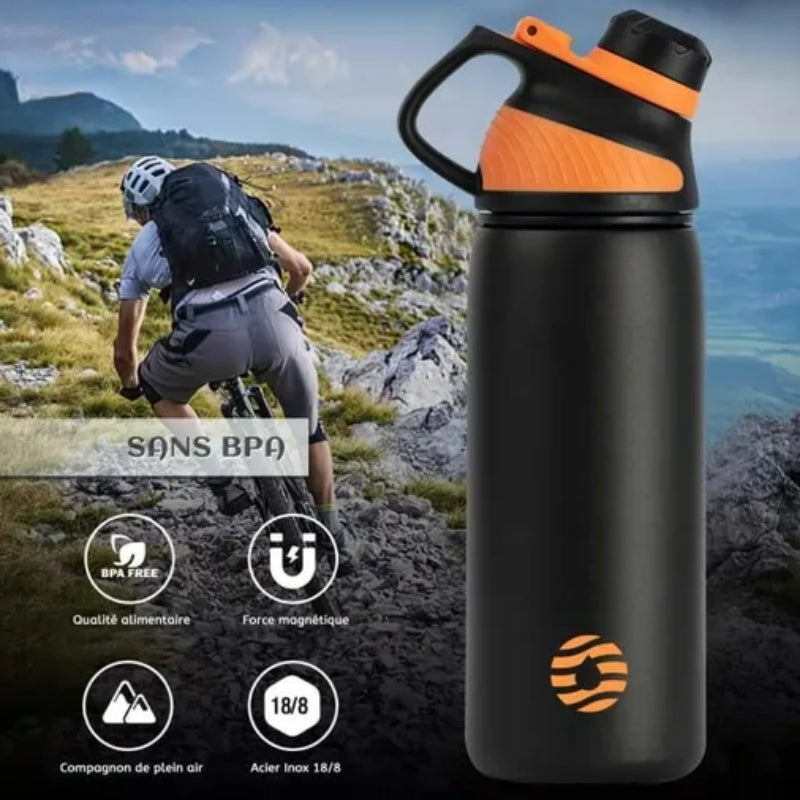 - Caractéristiques et spécificités : Isotherme, Léger, Résistant, Avec anse, Bouchon à vis, Système anti-fuite